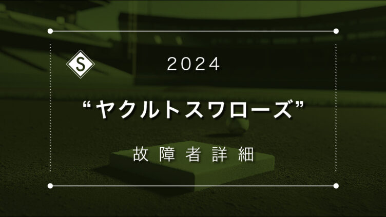 怪我・故障者 【2024】東京ヤクルトスワローズ 故障からの復帰経過詳細 2024シーズンの東京ヤクルトスワローズ怪我・故障者の復帰経過詳細です。現状の故障者については故障者詳細ページを御覧ください。 2024.03.30 2025.02.12 怪我・故障者